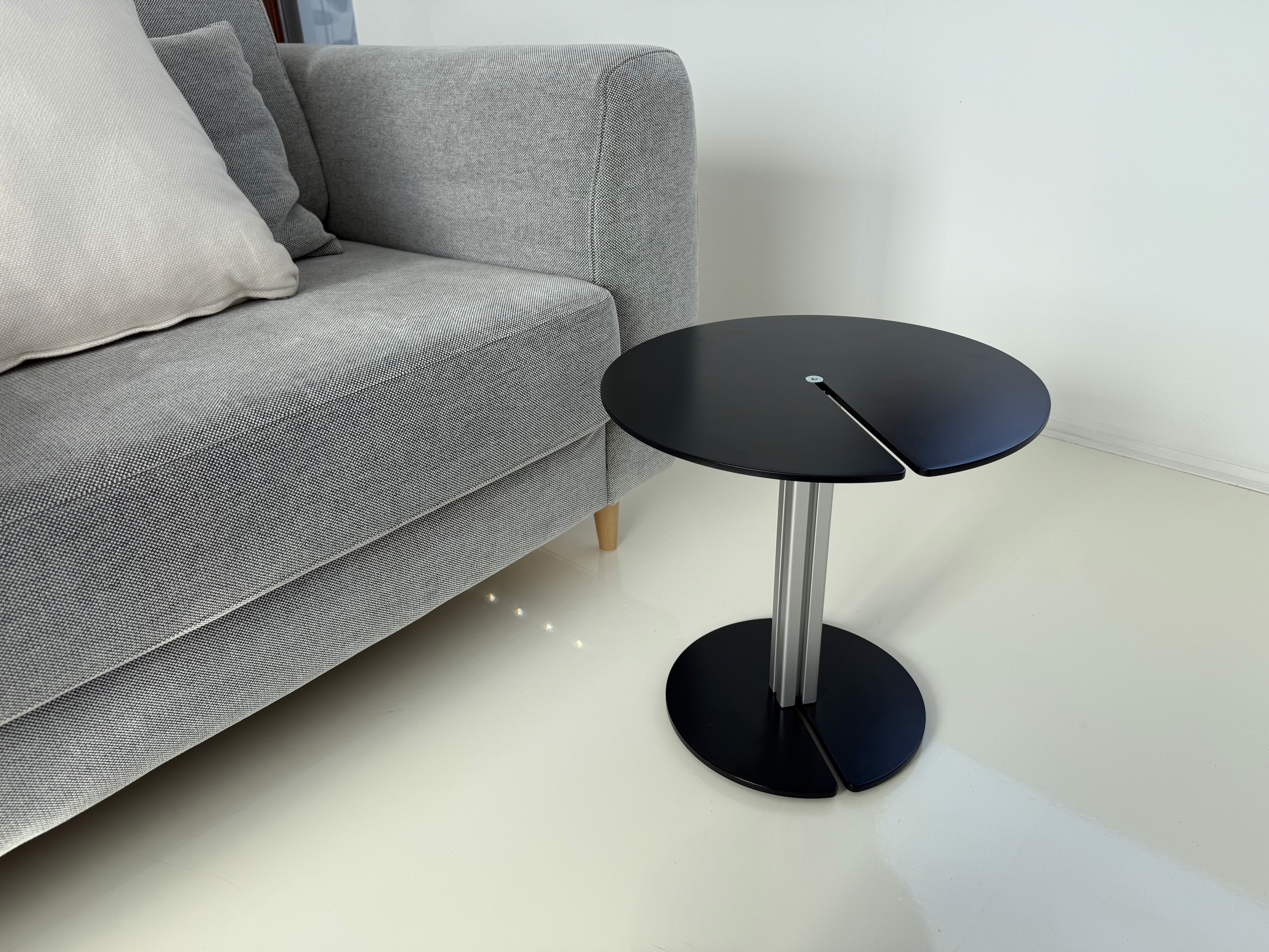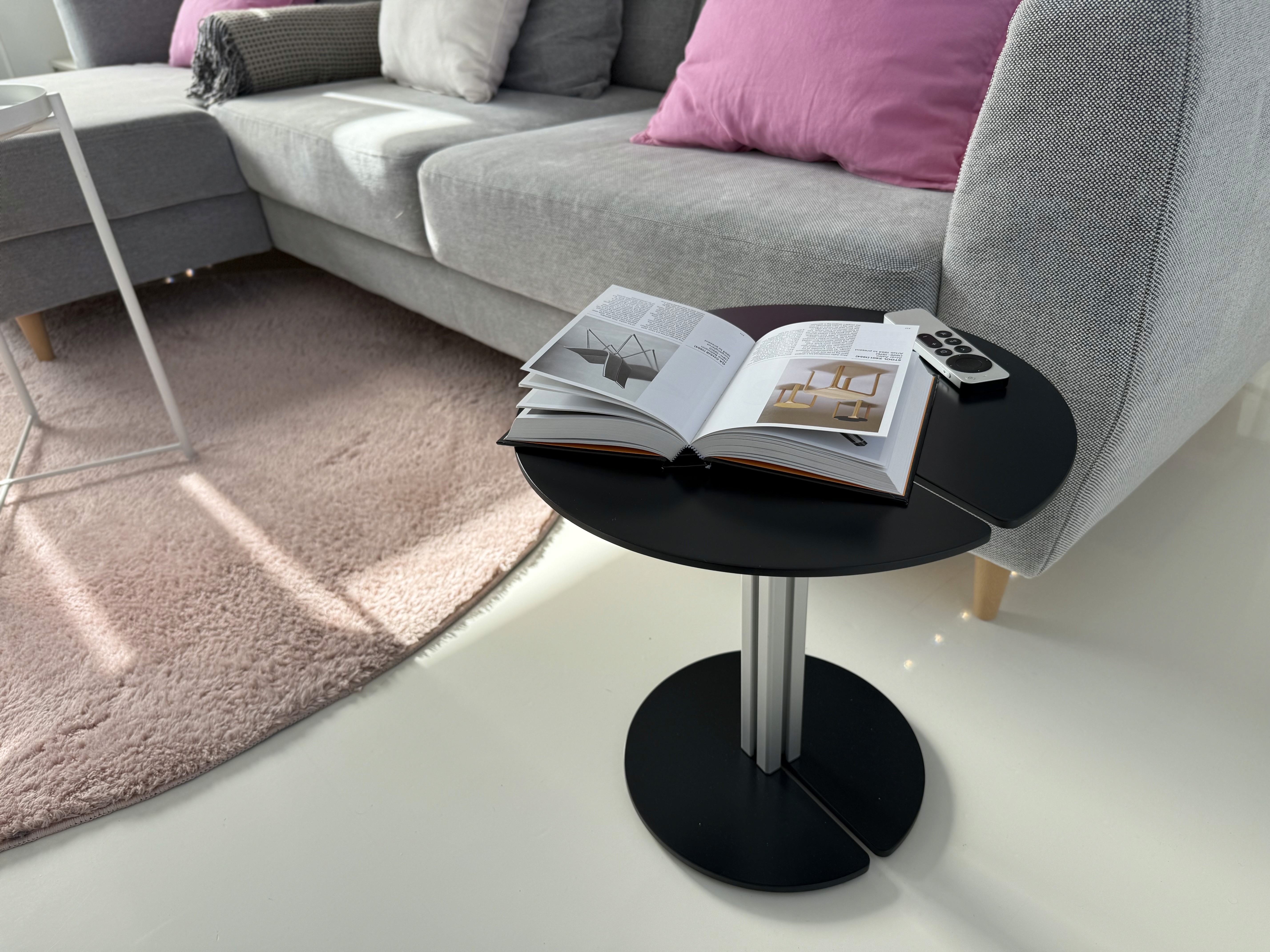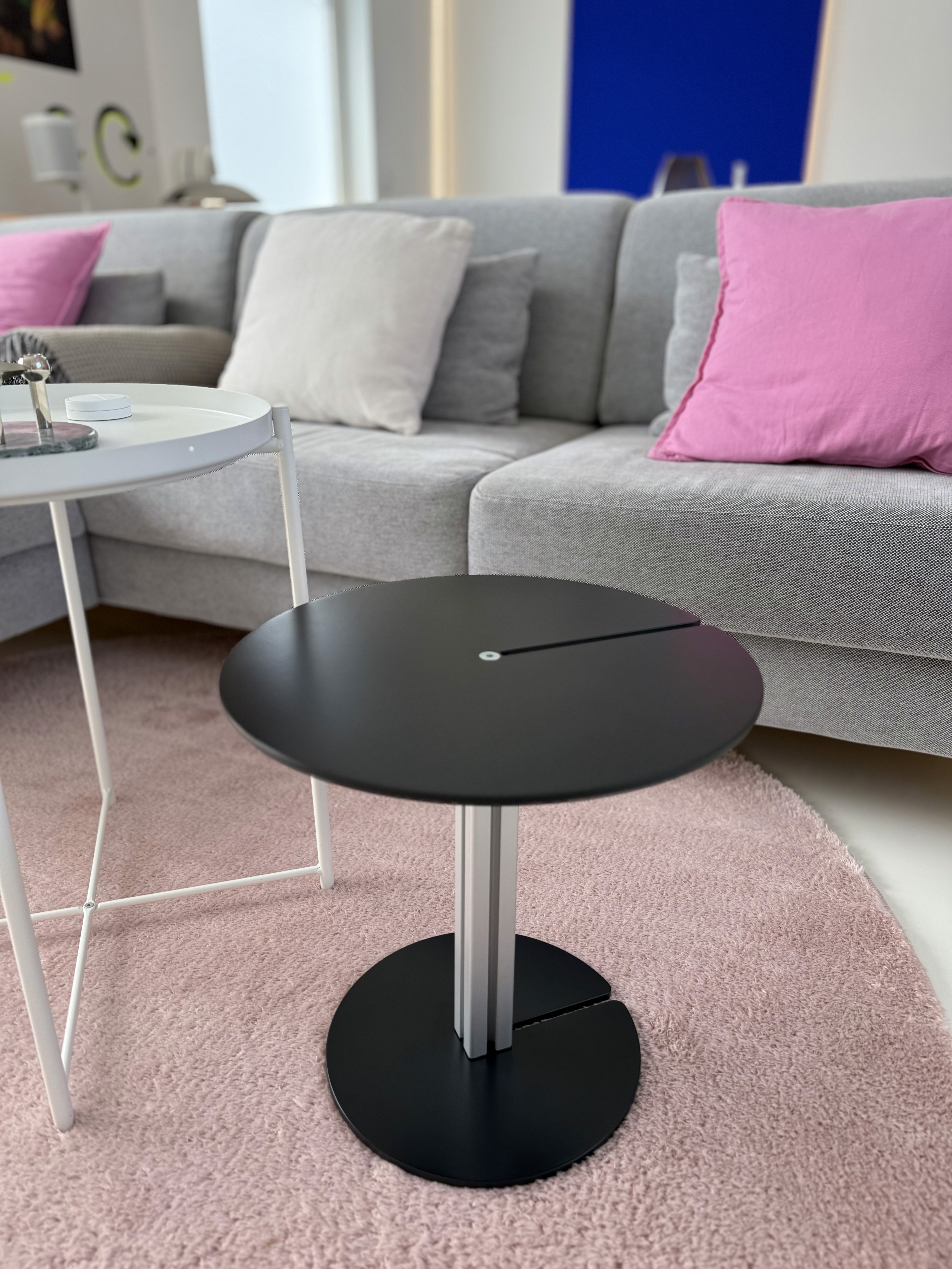 Ein Beistelltisch, der Kabel verschwinden lässt. Minimal, stabil, zeitlos.