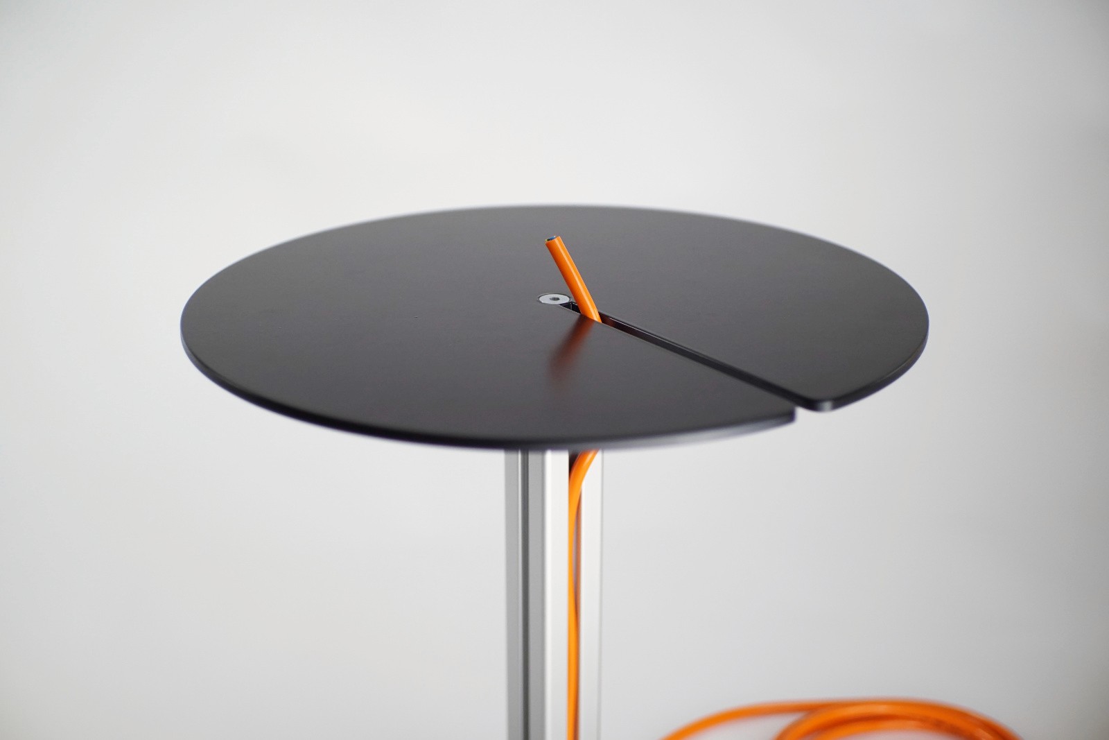 Inc1 ist ein Beistelltisch aus Vollmetall. Edelstahlfuß, Aluprofil, Aluminiumplatte.