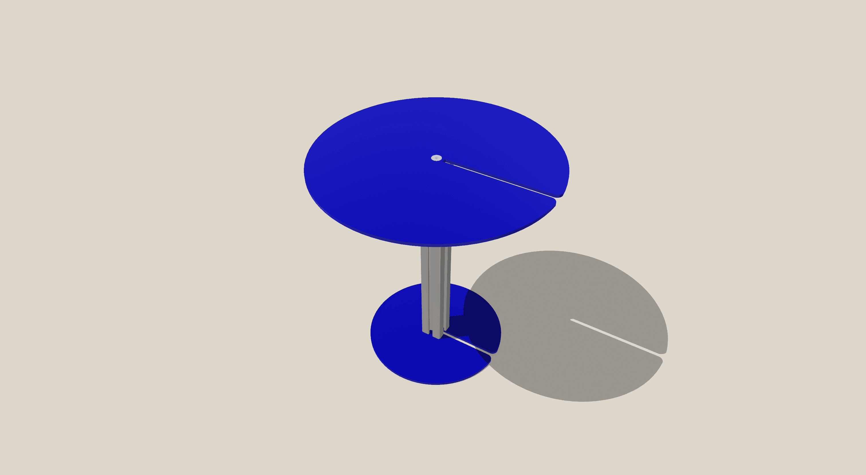 Die Form: kreisrunde Platte, klare Geometrie, ein einziges Bein, ein stabiler Fuß. Nichts Überflüssiges.