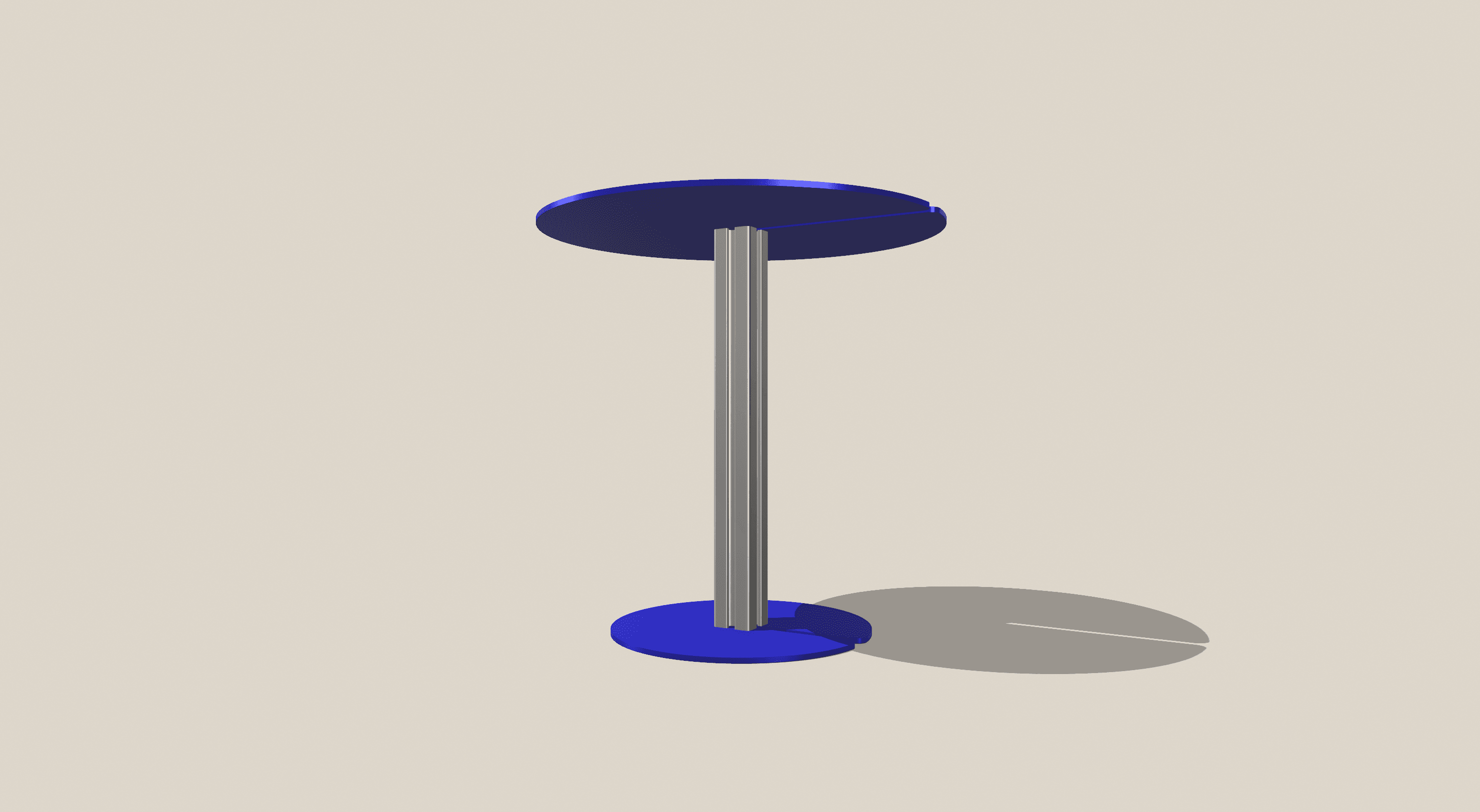 INC1 ist ein Beistelltisch aus Vollmetall. Edelstahlfuß, Aluprofil, Aluminiumplatte.